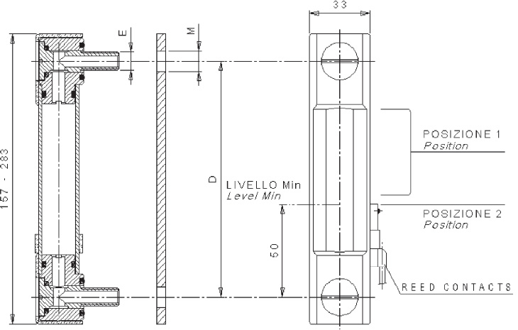 LV*E series visual level gauges allow the visual control of fluid level contained in the oil tank and activate a reed contact (normaly open / double switch) electrical signal when the minimum oil level in the tank is reached.Technical characteristics are the same as LV series.